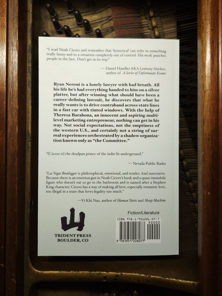 “Las Vegas Bootlegger is philosophical, emotional, and tender. And innovative. Because there is an emotion gun in Noah Cicero’s book and a quasi-immobile figure who doesn’t eat or go to the bathroom and is named after a Stephen King character. Cicero has a way of making all love, especially romantic love, too illegal in a state that loves legality too much.” -Vi Khi Nao, author of Human Tetris and Sheep Machine.