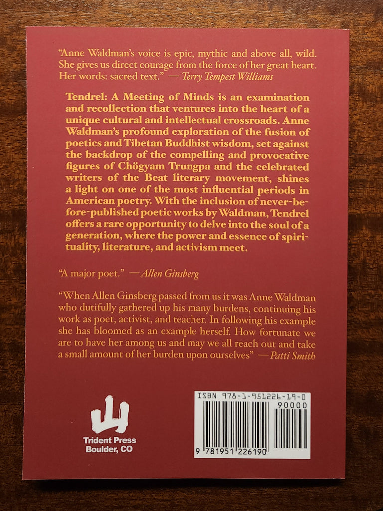 Tendrel: A Meeting of Minds is an examination and recollection that ventures into the heart of a unique cultural and intellectual crossroads. Anne Waldman’s profound exploration of the fusion of poetics and Tibetan Buddhist wisdom, set against the backdrop of the compelling and provocative figures of Chögyam Trungpa and the celebrated writers of the Beat literary movement, shines a light on one of the most influential periods in American poetry. With the inclusion of never-before-published poetic works by Waldman, Tendrel offers a rare opportunity to delve into the soul of a generation, where the power and essence of spirituality, literature, and activism meet.