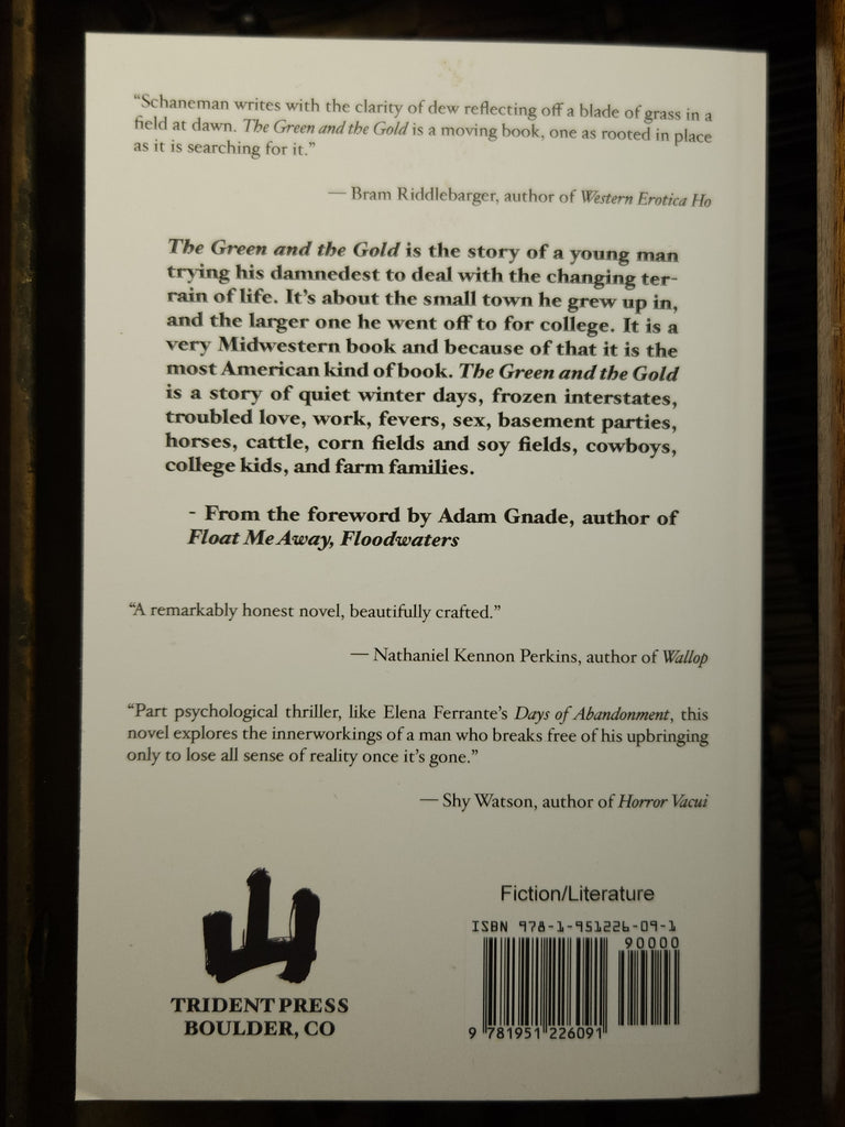 “Schaneman writes with the clarity of a dew reflecting off a blade of grass in a field at dawn. The Green and the Gold is a moving book, one as rooted in place as it is searching for it.” -Bram Riddlebarger, author of Western Erotica Ho.