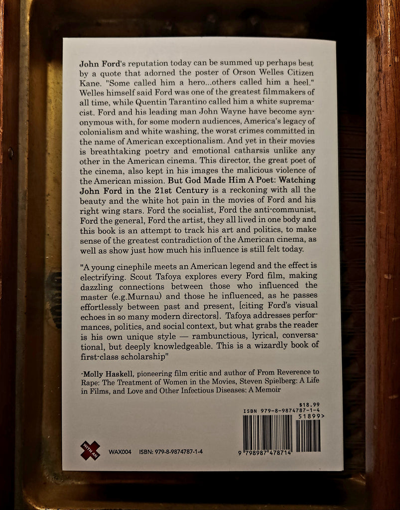 "Scout Tafoya revisits the movies of John Ford neither to praise nor bury him,but to show how alive his movies are 60 years after his death. To paraphrase Tafoya, reading about Ford's films in chronological order has rewards far beyond the poetry with which the filmmaker used his camera and with which Tafoya uses his words." -Carrie Rickey, award-winning feminist art critic for the New York Times, San Francisco Chronicle, The Village Voice, The Boston Herald, and Artforum