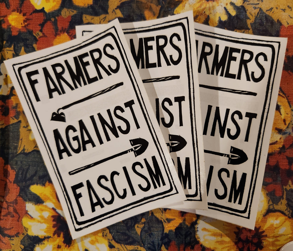 "Farmers Against Fascism" Sticker - is backordered and will ship as soon as it is back in stock.
