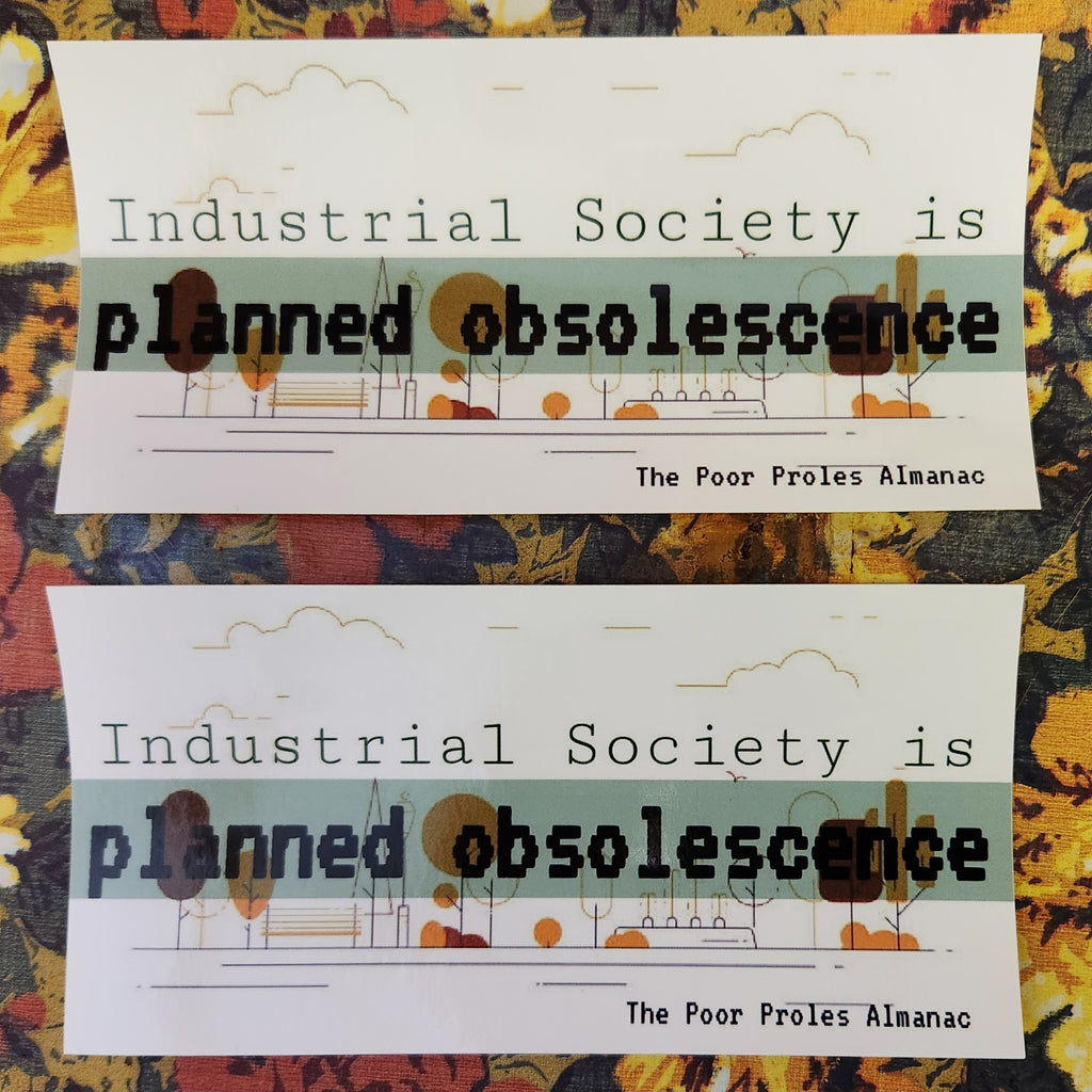 "Industrial Society is Planned Obsolescence" Sticker - is backordered and will ship as soon as it is back in stock.