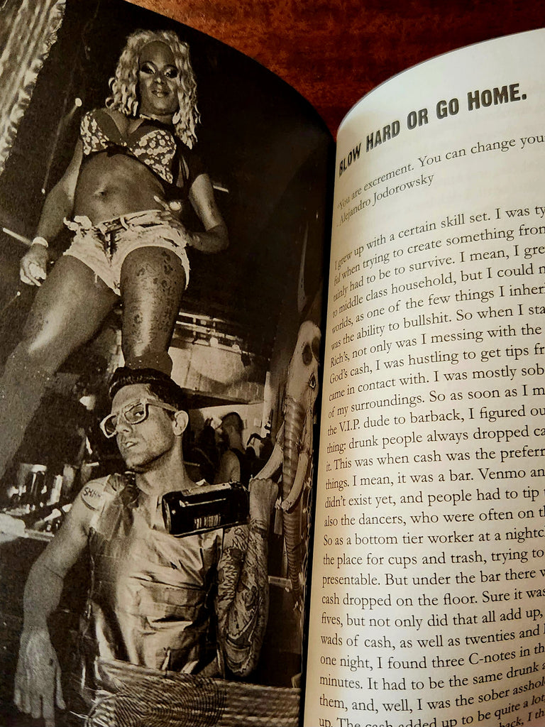 "Take this job and shove it... into a book. Being punk past forty means you’re an elder who has likely worked the most insane shit jobs of your life, whether they were fun, awful, paid the bills, paid at all, got your dick sucked, or encouraged you to tell people you could bend in half and suck your own. Those jobs* meant you could continue to make ‘art’ and hopefully pay rent. Reading Justin Pearson's story of fucking up, fucking off, and shockingly not fucking at all during a nearly decade-long run as a gay bar’s odd otter reminded me that we are all freaks on a similar path. I think? Don’t bother buying a bookmark or upsetting uptight zinesters with dog-eared pages. Despite ADHD, exhaustion, and a spaced-out brain, I blasted through this in one sitting. Justin will hold your attention from the first page to the last." -Jenna Pup of HIRS